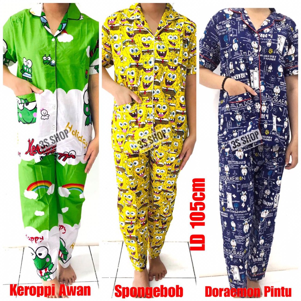 Baju Tidur Piyama Dewasa Cp Lengan Pendek Katun Doraemon Keroppi Cat Bee Bear Spongebob Lol Pooh Shopee Indonesia
